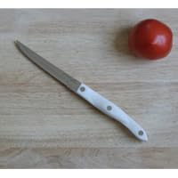When I opened this gift after our wedding, I thought it was odd to give one little steak knife as a present. It is the only present that I still use. Amazingly still sharp! I've bought other knives, but always return to this little knife for the bulk of my cooking needs.This cutco knife is a real winner! I have Shun as well as Wusthof, but this one is the handiest size for cutting a tomato, hulling strawberries, etc. Ii has a nice grip, and the serrated edge works wonderfully.These knives are immortal! Don't be fooled by those who think that knives have to have German names or that shiny steel is somehow inferior to a matte finish. At least Cutco hasn't cheapened their brand by creating several tiers of product lines. There's no secret code here. You want the best? Pony up, and enjoy for a lifetime.