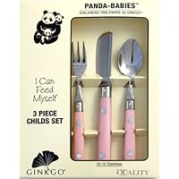 Want Ginkgo Panda Babies 3-Piece Stainless Steel Childs Flatware Set, Light Pink Discount?
