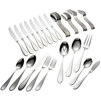 We were looking for a heavy set of flatware that could be used for both informal and formal dining. This heavy, hardy set has really fit the bill! They do well in the dishwasher and look beautiful on the table. The knife has a good weight and balance, the forks and spoons are just the right size, and the serving set is nice to have. As a bonus, this Yamazaki style boasts a great deal of matching serveware like the unique lasagna server, cake knife, salad servers, and many more. Worth the money, especially with the long-wearing 18/8 stainless steel rating.Bought this to replace a several year old set from Crate and Barrel, which was discontinued and fairly expensive. I went with this set mainly because the design was very close to the one I was replacing (which was fine, just missing some pieces) so if I had to mix/match this set with the old one it would be OK.I was extremely surprised by the quality of this set. Very sturdy and "heavy" (not too heavy but enough to know it's quality). It's our casual set so it's used every day and run through the dishwasher several times per week. We've had the set for several months now and they show absolutely no signs of any wear and tear.