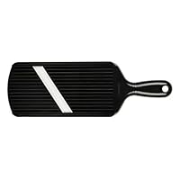 This little slicer is worth its weight in gold, both in time saved and performance. I especially like it for shredding cabbage to make coleslaw, where it does a better and quicker job than the food processor; plus it's a snap to clean--just rinse with warm water, that's it. The blade is very, very sharp, and to be safe I would recommend wearing a cut-resistant glove, as the holder that comes with it is totally useless. I store it away from drawers, where one might acidentally cut oneself, by hanging it on the wall in a small kitchen pantry. I love kitchen gadgets, and this one ranks right up there at the top of the list.After buying and throwing away a number of slicers, I finally now have one that will stay. This slicer is a workhorse. It slices with little effort and is very sharp. The ceramic blade does not bend like most slicers. My first time out I sliced 6 huge cukes-unpeeled and 2 huge onions in a very short time with little to no waste. Each slice was perfect & thin. The finger guard was great with the onions. This is well worth the money.Buy Kyocera Double-edged Slicer With Guard Now