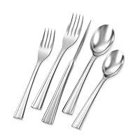 After viewing dozens of flatware patterns, hoping to find one at my local Bed, Bath and Beyond in order to use my 20% coupon and feel the heft of the pieces to make sure they would work, I was consistently drawn back to the Autobahn pattern. One hesitation was that it only came with two serving pieces, a larger fork and spoon, rather than the standard five pieces. The look of the flatware trumped the smaller number of serving pieces and since BB&B did not carry this particular pattern, I purchased the set from Amazon.The flatware arrived in a day and was just as beautiful as the picture on the site. It was a great relief that the weight, lighter than the set we had, was perfect. The longer length of each piece was actually more comfortable to hold. The knives were definitely sharper than most flatware knives and the fact that they are not intended to lay flat provides them with a more unique look.