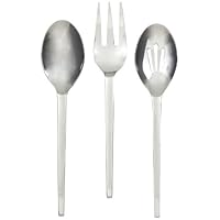 These are both attractive and functional. Since they lack any ornamentation they will match just about any flatware, and are perfectly sized for serving most meats and vegetables.I love the versatility because you have not only a regular serving spoon, but a slotted one as well. And the fork is sized to spear even the thinnest cuts of meat like milenesa, as well as thick cut chops and everything in between.