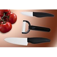 They worked very good but I now have two large nicks in the big knife. We did not cut any thing hard, the one nick showed up just as we were cutting up a head of lettuce. The peeler seems to work ok.I ordered this set because it came with the peeler. At first I found the peeler difficult to use, but once I realized I was trying too hard it became a dream. It peels even the softest fruit so quickly and easily and doesnt' leave anything turning brown. I especially like this for sweet potatoes as they turn brown so quickly when using a metal knife or peeler. The knives are great, but be very careful. When they say ceramic knives chip easily they are not kidding. I chipped the large knife the first time I used it, but it still works great. I especially love being able to cut up fruit to take for lunch and it isn't brown when I go to eat it. Just rinse the knives and dry them, no detergent needed as they are non porous. Also, the knife blades come down past the handle so the entire blade can be used for cutting, not just the front. The Yoshi advertised on TV has a blade that won't contact the cutting surface near the handle.Buy Zhuhai Ceramic 2pc Knife Set Includes 5.5-Inch Chef Knife, 3-Inch Paring Knife & Peeler Now