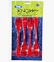 Theis is a great idea on paper. Who doesn't want environmentally friendly plastic tableware that is light, for those who can use that type of help, and attractive? Unfortunatel;y, after using and washing these for about a week or so, I notice that the fork end started becoming shorter. It seems to be disintegrating, although I can't say where it's going. Thinking that I might be ingesting it made me queazy so I finally have to throw the rest of the package away.My mother is in a personal care home. I bought her metal knorks and they come up missing. The price is much better for the plastic version and they work just as well without the high cost of the metal ones and they work just as well.Buy Knork Premium Plastic Reuseable 4 Pc Pack Now
