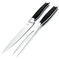 Con's: Handle and bolster of knive not a great weight leading to average balance and handling, handle feels "cold" , Knife blade is wielded together to the handle next to bolster, (unlike higer end knives that are one piece forged steel which equals better strengh and durability), not for high use or commercial uses.The set seems to be well made, good quality, and the knife is razor sharp as we had hoped it would be. For home use, can not really see why anyone would spend more money on a carving set unles they just want a particulr knife. They should last for many years. Glad we bought them.