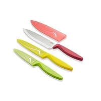 These knives are great for the price. I live with 3 other guys and so these knives get plenty of use and abuse but they're still sharp and quite durable. The colors are fun and make them easy to pick out from a full drawer and the different sizes/types in this pack are also convenient.I had been looking for these knives ever since I returned to the USA. I used them all the time in New Zealand. However, when the knives arrived, only one of the knives is serrated? Never mind, they are still very good knives at a reasonable cost.Buy Kuhn Rikon Classic Serrated Utility Knives, Set of 3, Yellow, Green, and Red Now