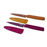 Kuhn Rikon Colori Art Paring Knife with Straight Edge/Orange and Serrated Edge/Pink Polka Dot, Set