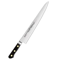 For starters, it has a dragon on it. It came out of the box very sharp. I work in a kitchen, and it is my "go to knife". It has just enough knuckle clearance to chop with. A slicer that dices, how cool is that?(sujihiki means slicer.) This knife will rust, so keep it dry. Misono also has stainless steel knives, if you don't want to deal with the carbon steel. Did I tell you that it has a dragon on it?