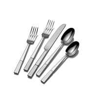 It may be difficult to see in the stock photo, but the first half of the handle is a brushed stainless and the remainder is polished. This wouldn't be an issue if the brushed part wasn't so susceptible to scratches. Out of the box over half of the utensils were scratched and I hadn't even used them yet. In addition, the end corners of the handles are very sharp and borderline dangerous. I wouldn't recommend these if you have kids or depressed people living in the house.These Mikasas will be going back and I'm splurging for the 8-piece Henckels set with serving utensils for only $35 more.