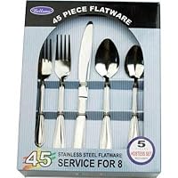 I received this product in unsat.condition. The box appeared to be "bent and chewed up". The flatware looked cheap and even discolored.It was all out in the box. This was ordered for a christmas gift. I did not give it, instead I went out and bought more.Read Best Reviews of Deluxe 45pc Stainless Steel Flatware Set - Service for 8 Here