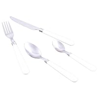 I would have given this set 5 stars, but the teaspoons are small and remind me of baby spoons. Other than that, I'm happy with my purchase and I love the bright white handles.Figured the price was great, and I can see why. Look like they may last 3 months. The forks, only ones in order, are not standard dinner size, they are salad type. Oh well.