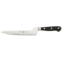Unbelievably, this knife is now one of my favorites. I have a fairly substantial collection of knives and this is becoming one of my favorites. The Wusthof classic line, some of which I've had for over 25 years, just seem to go on forever and still look great. Its scalloped blade makes short work of any breads,party subs,bagels,tomatoes, pot roast, ham--anything needing slicing with a touch precise enough to slice thinly without tearing. The offset construction provides a more secure grip and control for whatever slicing task is at hand. It's far from inexpensive, but when considering it multi-tasks as a tomato/bread/sandwich/slicer and carver(I'd use it carefully with boned meats to avoid any chance of dulling the edge),it was money well spent.This is one knife in a long list of Wushof knifes (around 20) I have bought for my wife. She loves the knife just like all the other but really likes the offset handle when she cuts bread or sandwich. She doesn't have to slide the bread or sandwich to the edge of the table to cut it any more.