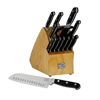 If you are comparing brands, I think the Chicago Cutlery Centurion knives will stand up well against the much more expensive German brands. Mine are still extremely sharp and look brand new after three years, while receiving only the normal reasonable care I would give any good set of knives.So far these knives are meeting my expectations and look to be exactly what I was looking for, a set of knives that I can use and sharpen. The last set I was given had the little perforations on them and you couldn't sharpen them.