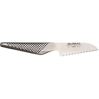 Global knives have very thin, stiff blades. They also have comfortable grips that never slip in your hand and give you the proper leverage for each job. They are light and precisely balanced. Although they are expensive, you will never replace them. This knife, however, is too short. Global has a 6" serrated utility knife that I want.Read Best Reviews of Global GS-9 - 3 inch, 8cm Serrated Tomato Knife Here