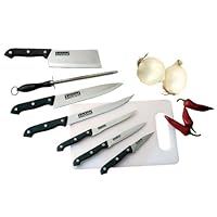 I was expecting these knifes just to "do the trick" but my fiance is a professional cook and was impressed at how well and sharp they were considering how cheap they were. We're happy to have bought themRead Best Reviews of Kittamor 7-Piece 18/8 Stainless Cutlery Set Plus Poly Cutting Board Here