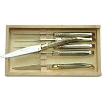 SCIP Boxed Laguiole Stainless Knives with Blonde Horn Handles and 2-Brass Bolsters, Set of Six