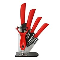 Read Best Reviews of Black Ceramic Knife Set- 3", 4", 5", 6" with Red Handle + Peeler and Stand Here