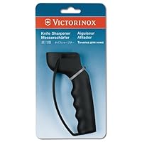 Customer review from the Amazon Vine Program As a manual sharpener, this is pretty much a no-brainer. The knife is pulled through the slot with pressure for about 3 times and then again with lighter pressure for 4-6 times to smooth the edge. Visually, I couldn't tell the difference in the blade nor could I feel a difference by touching the edge. But I tried cutting cardboard with the sharpened knives (I used 3 different blades) and they all seem to cut better. Safety wise, this product is pretty good since you hold the blade upward and pull away from yourself so no risk of cutting yourself. It's light and handy and can be easily stored in a drawer. Design-wise, it functions well but doesn't look very pretty.Want Victorinox 49002 Handheld Manual Knife Sharpener Discount?