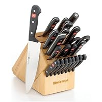 Bought these as a step up from the crappy Pinzon knives we bought from Amazon years ago. They were shipped from Macy's and Yay! they shipped to APO addresses. Let me tell you, when these things arrive they are SHARP! However, these aren't Wusthof's top of the line by any means. Some of the steak knives were full tang, some only partial. Most of the blades are pretty thin, with the exception of the larger blades (santoku, cook knife, cleaver, etc.). And the included block clearly wasn't intended for this set. It's short two slots, so I had to double up on some of the knives, while the slots for the smaller knives are too big, leaving way to much wiggle room. But using these knives is a dream. They glide through produce and veggies with nary an effort. I've been using them for over 4 months now, and they still seem as sharp as the day I got em. Been using the steel only when I felt I needed to, and have used the provided Wusthof pull-through "sharpener" as sparingly as possible. Would I buy this set again? For the price I paid (on sale) yes. But I do think I'll spend the extra money and get Trident Classics or their Grand Prix2.