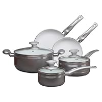 You get what you pay for so don't expect gourmet cook ware.However for the money this set is pretty good.The bottoms have a decent layer of metal.They clean up very easily.I had planned to give this set away.I wound up with them and find myself reaching for them often.Even though I have some better cook ware.As I said these do clean up easily.