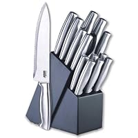 THESE ARE VERY NICE KNIVES IF YOU WANT GREAT LOOKING KNIVES AND DONT WANNA SPEND A FORTUNE...THEY ARE VERY SHARP AND QUALITY MADE...DO NOT BUY KNIVES WITH BLACK PLASIC HANDLES...THEY WILL FADE AND HAVE A WHITE FILM BUT THE SILVER STAINLESS ELIMINATES THAT PROBLEMRead Best Reviews of Cook N Home 15-Piece Stainless-Steel Cutlery Set with Storage Block Here